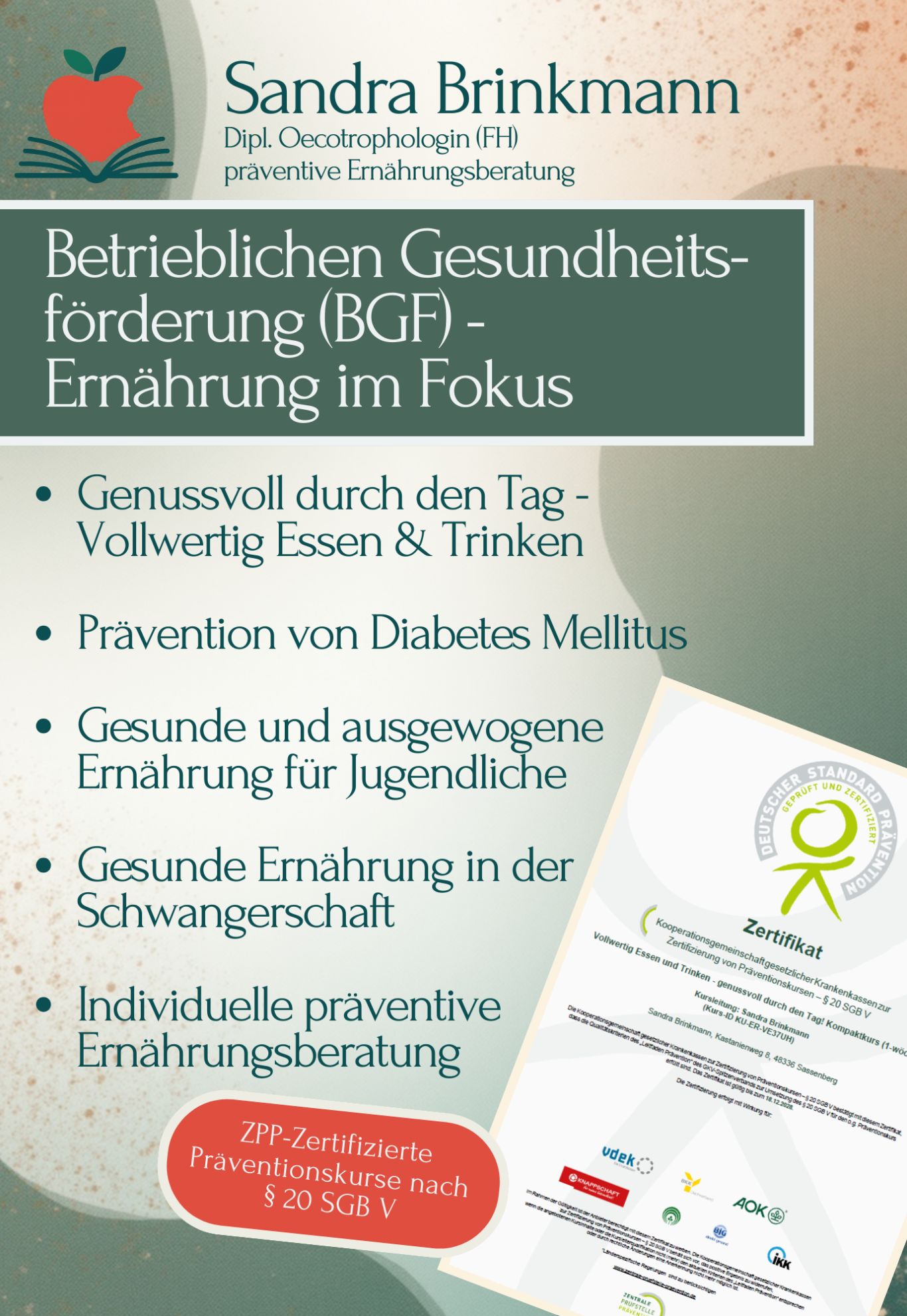 Alle meine Präventionskurskonzepte sind auch für die Betriebliche Gesundheitsförderung in Ihrem Betrieb geeignet. Im Umfang können wir diese an Ihre Bedürfnisse anpassen.